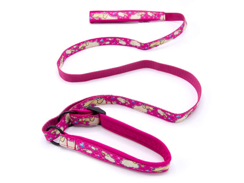 - Styl, který zaujme - Vodítko je ozdobeno stuhou s originálním motivem ovečky z dílny DogWorld Graphics – už žádné nudné vybavení!