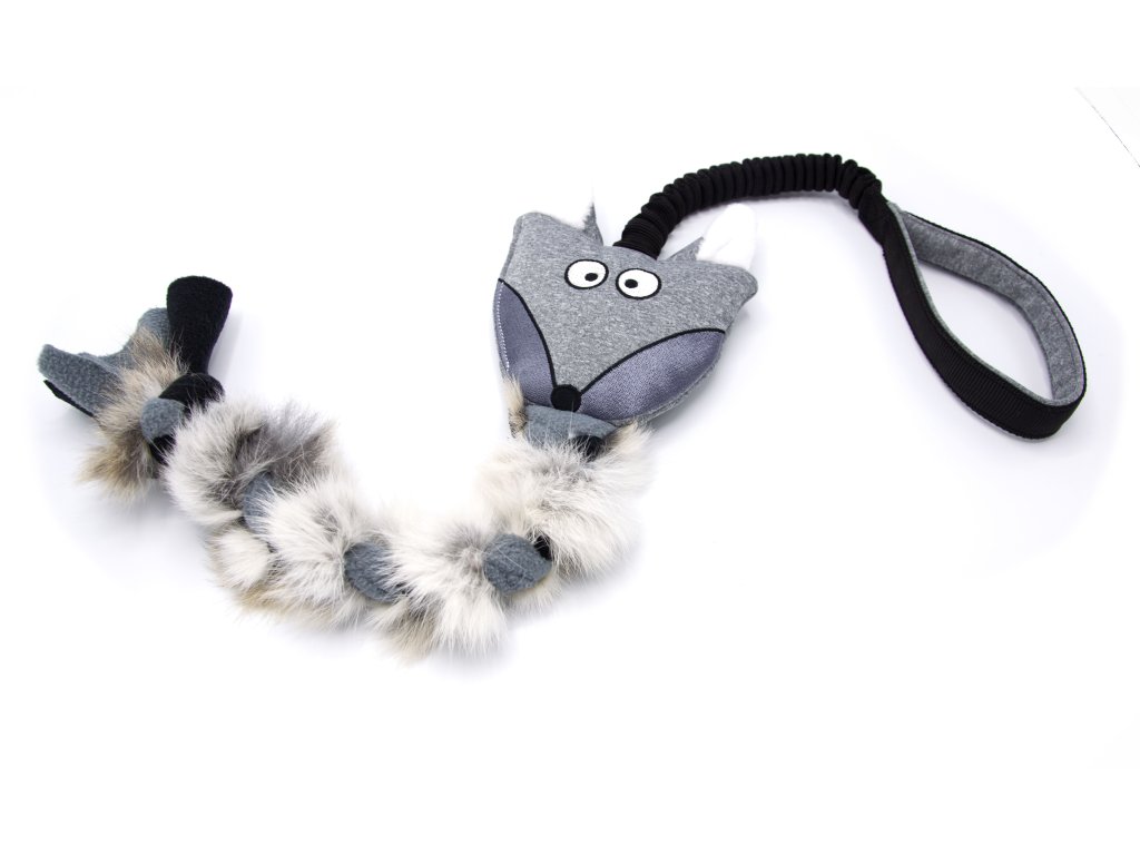 Hračka pro psa vlk s králičí kožešinou a flísem nezkazí žádnou hru. Skvěle poslouží jako pomocník při psích sportech a výcviku. Je vyroben z funkčního softshellu, který se používá pro výrobu outdoorového oblečení. Hračka obsahuje jen malé množství výplně. Díky tomu je přetahovadlo odolnější i při divokých hrách. Hračku jsme vyrobili ručně v ČR.