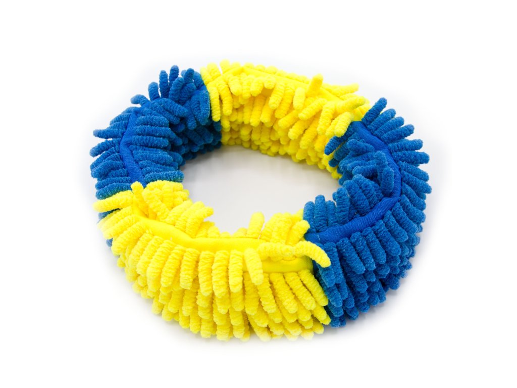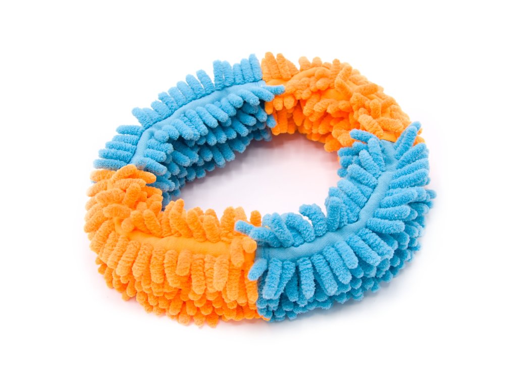 Mopový kroužek bude novou nejoblíbenější hračkou vašeho psa :-) Mopový kroužek je ušitý z materiálu, který psi milují. Navíc je uvnitř kruhu zašitý pevný popruh, aby byla hračka odolnější.