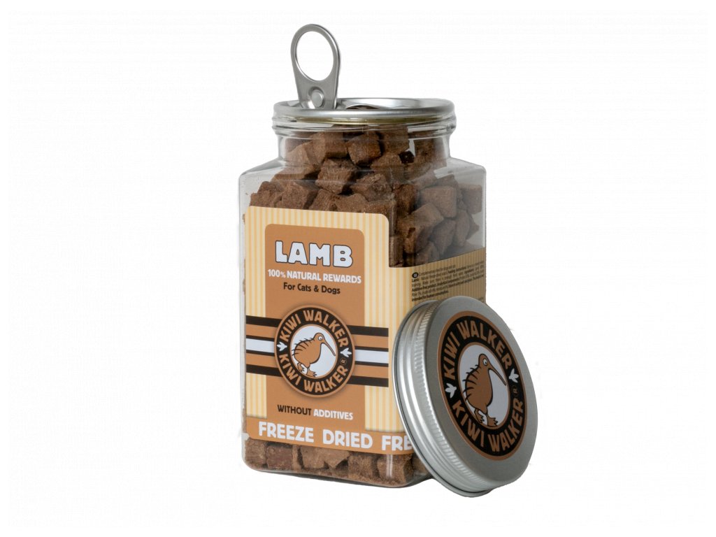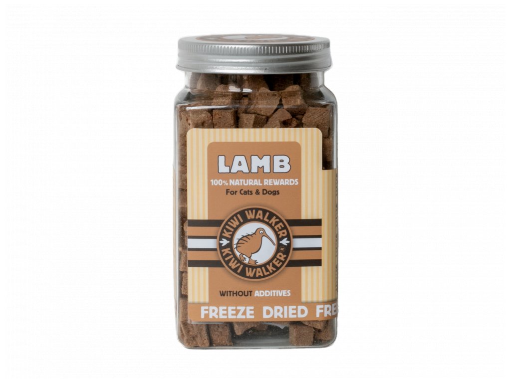 Mrazem sušené jehněčí Kiwi Walker je prémiový přírodní pamlsek vyrobený ze 100% jehněčího masa, bez použití konzervantů, dochucovadel či jakýchkoli dalších přísad.