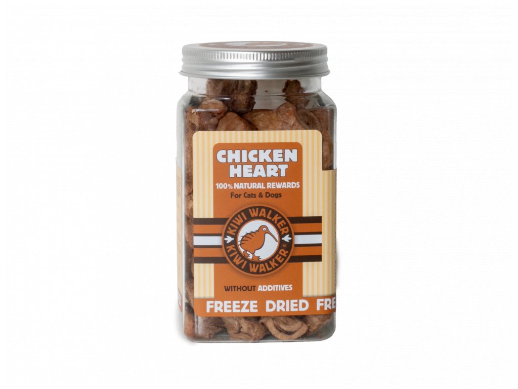 Mrazem sušená kuřecí srdíčka Kiwi Walker jsou prémiový přírodní pamlsek vyrobený ze 100% kuřecích srdíček, bez jakýchkoli konzervantů, dochucovadel či umělých přísad.