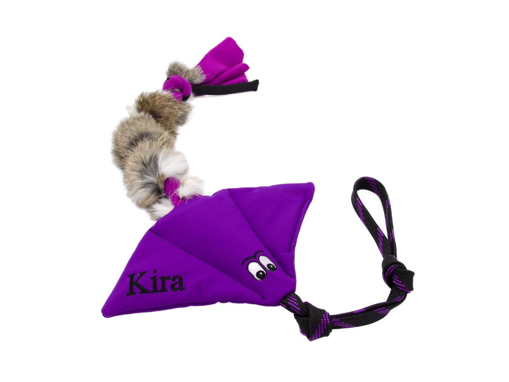 Tento pískací bestseller rozveselí vašeho chlupáče a je i originálním dárkem pro každého pejskaře. Rejnok ze softshellu s pravou králičí kožešinou a rukojetí vznikl podle návrhu našich fanoušků. Hodí se pro všechny teriéry, kolie a jiné hlídače, kteří mají rádi přetahování. Králičí kožešina je pevně přišitá k popruhu a zamotaná s flísem, nemusíte se tak bát opřít se do přetahování vší silou. Rejnok má dvě pískátka, v každém křídle jedno, a pohodlnou rukojeť, za kterou se dobře drží. Na rejnoka vám rádi vyšijeme jméno vašeho pejska, takže si je na cvičáku nespletete.