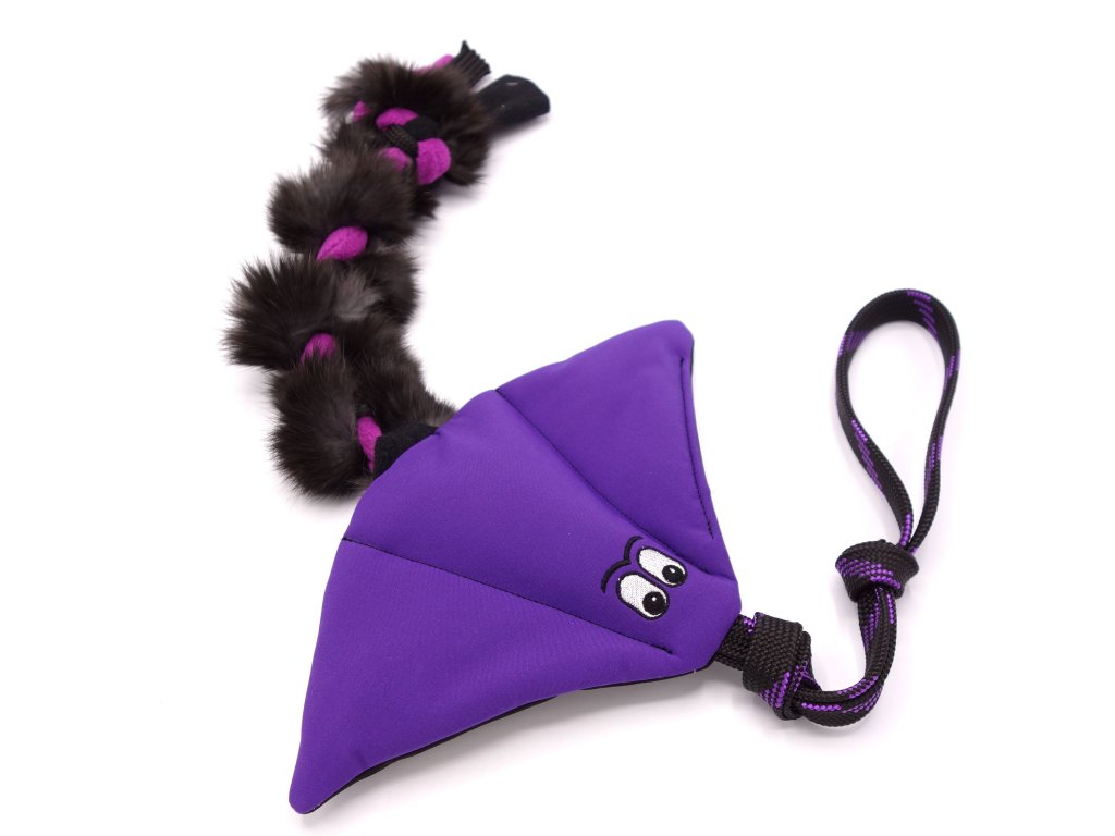 Odolná hračka pro psa – softshellový rejnok s králičí kožešinou, fialová a černá