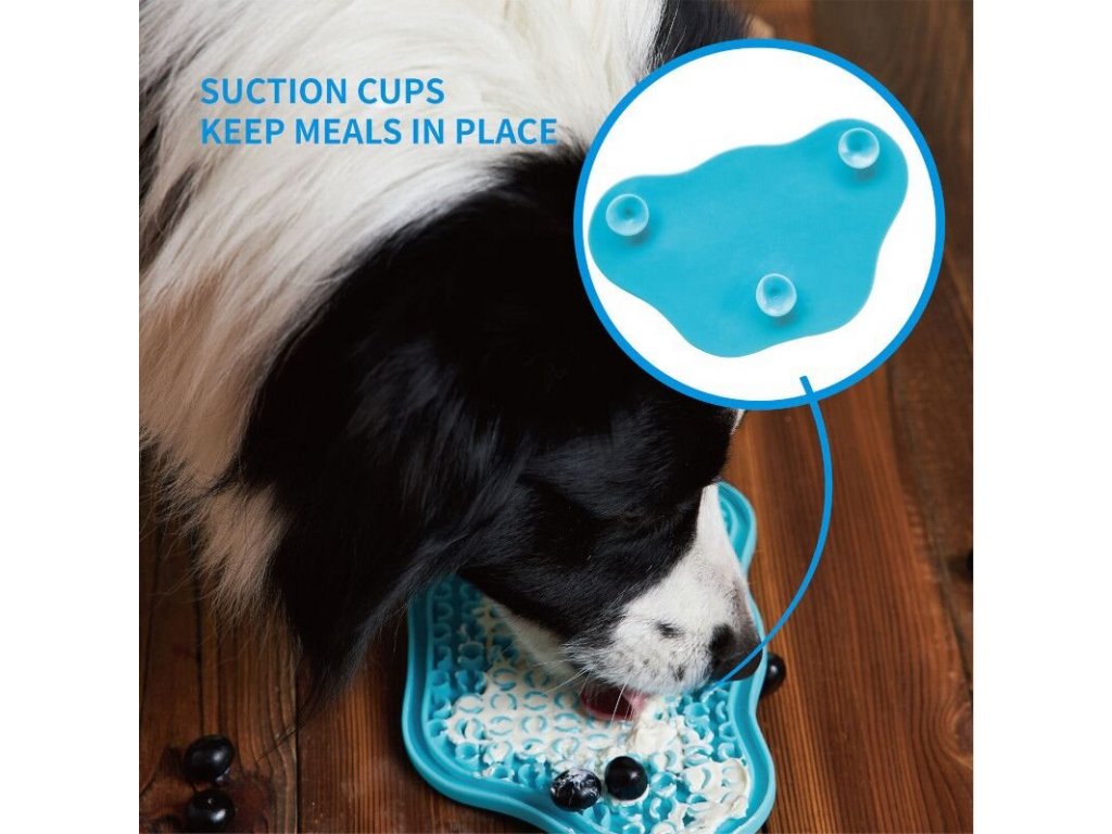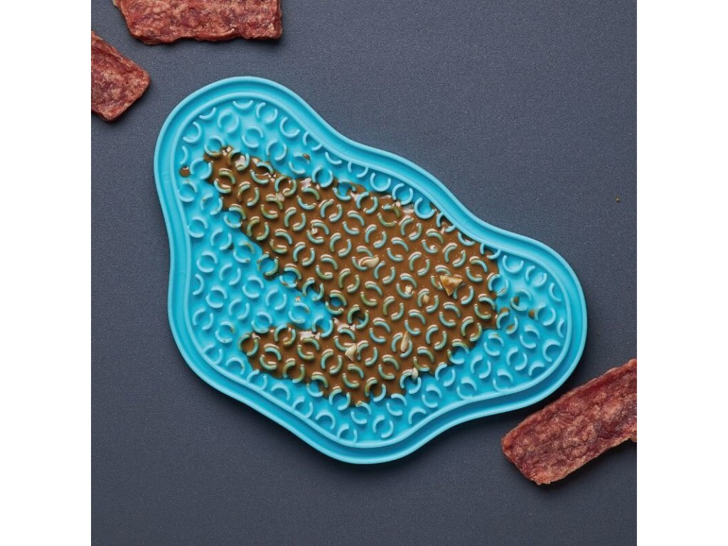 Podložka Paw Lick Pad v modré barvě je navržena tak, aby vaši mazlíčci zažívali nekonečnou zábavu, a přitom se zklidnili a uvolnili. Povrch podložky je speciálně navržen pro tekutější a lepivější pochoutky, jako jsou paštiky, konzervy, vývary, jogurty a další oblíbené mokré pamlsky a krmiva. Psi a kočky olizováním snižují svůj stres. Ve vypjatých situacích, kdy jsou nervózní nebo napjatí, je Paw Lick Pad skvělým prostředkem k jejich uklidnění. Olizování totiž produkuje sliny, které jsou nezbytné pro správné trávení a přirozeně chrání dásně a zuby vašich mazlíčků.