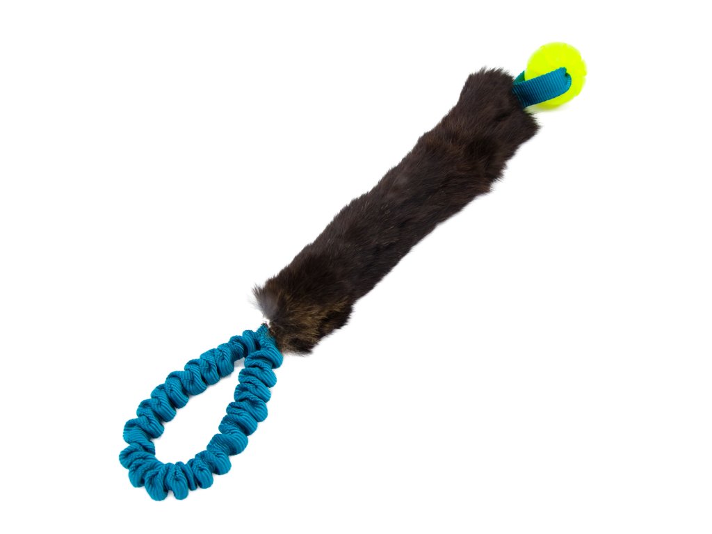 Přetahovadlo pro psy - s králičí kožešinou a gumovým míčkem (5 cm)