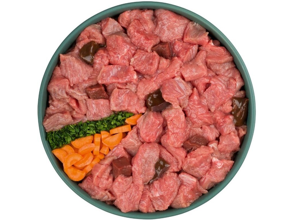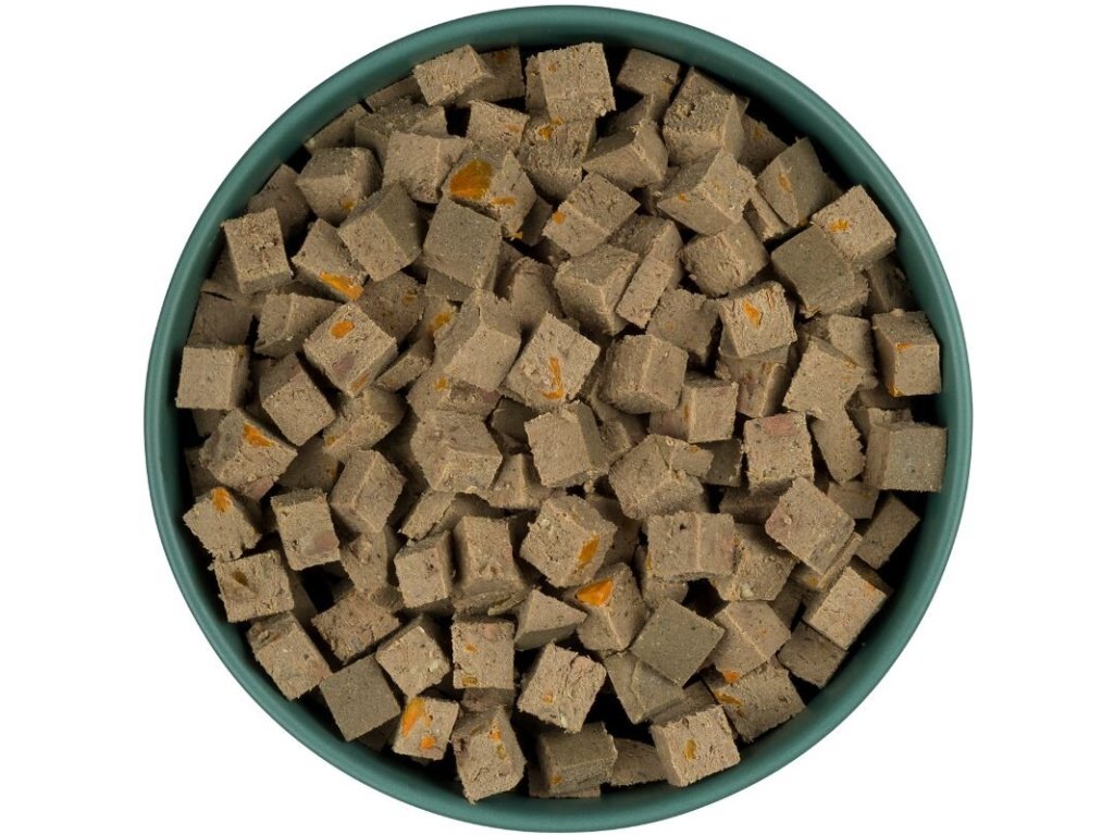 Složení: kozí maso a vnitřnosti 90 %, mrkev 5,5 %, bylinky 2,5 %, minerály 1 %, vápenec 1 %